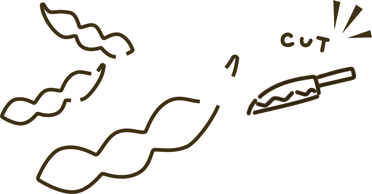 ゆでる前の下ごしらえで先端部分をはさみで少し切り落とします。